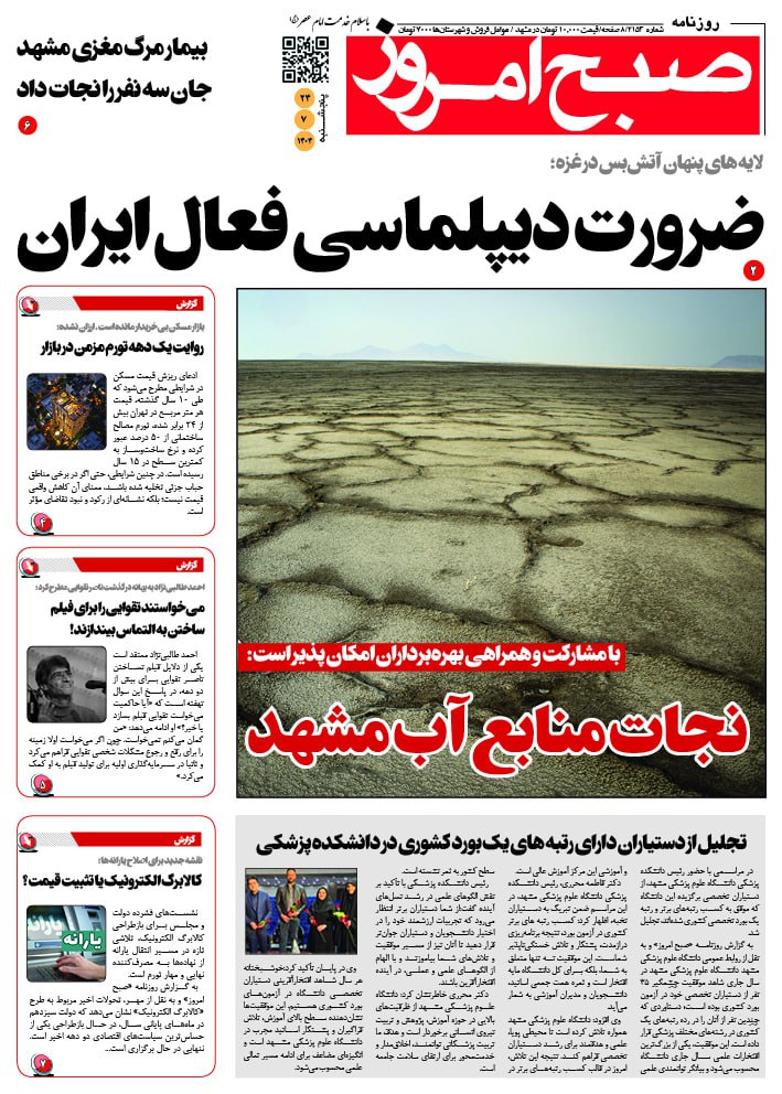 قاب روزنامه صبح امروز