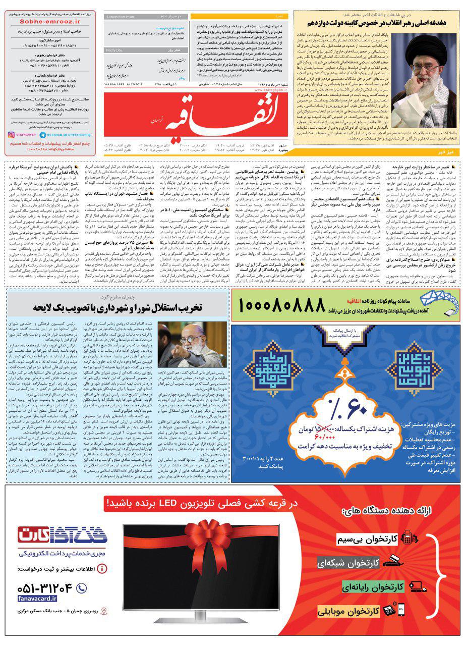 روزنامه 7 مرداد مرداد 7, 1396/1 دیدگاه/در قاب روزنامه /توسط صبح امروز صفحه یک صفحه دوم صفحه سوم صفحه چهارم صفحه پنجم صفحه ششم صفحه هفتم صفحه هشتم دانلود PDF روزنامه https://sobhe-emrooz.ir/wp-content/uploads/2017/07/photo_۲۰۱۷-۰۷-۲۸_۲۳-۱۴-۱۷.jpg 891 1280 صبح امروز https://sobhe-emrooz.ir/wp-content/uploads/2019/07/sobh1.png صبح امروز2017-07-29 10:02:002017-07-29 19:27:48روزنامه 7 مرداد