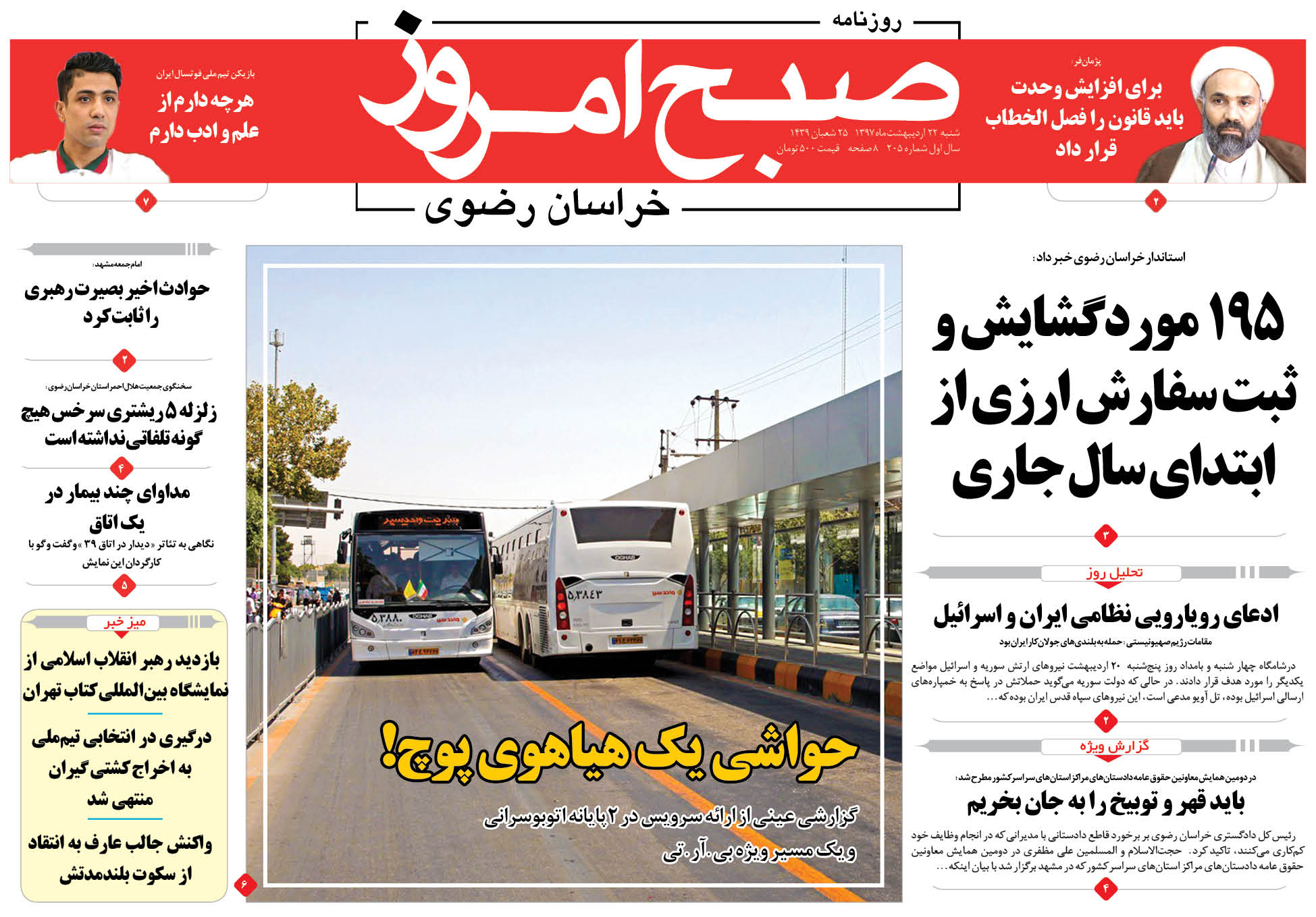 روزنامه صبح امروز شنبه 22 اردیبهشت 23, 1397/0 دیدگاه /در قاب روزنامه /توسط صبح امروز صفحه دوم صفحه اول صفحه هشتم صفحه هفتم صفحه ششم صفحه پنجم صفحه چهارم صفحه سوم صفحه چهارم صفحه هفتم https://sobhe-emrooz.ir/wp-content/uploads/2018/05/1-3.jpg 1359 1949 صبح امروز https://sobhe-emrooz.ir/wp-content/uploads/2019/07/sobh1.png صبح امروز2018-05-13 11:37:332018-05-13 11:38:26روزنامه صبح امروز شنبه 22