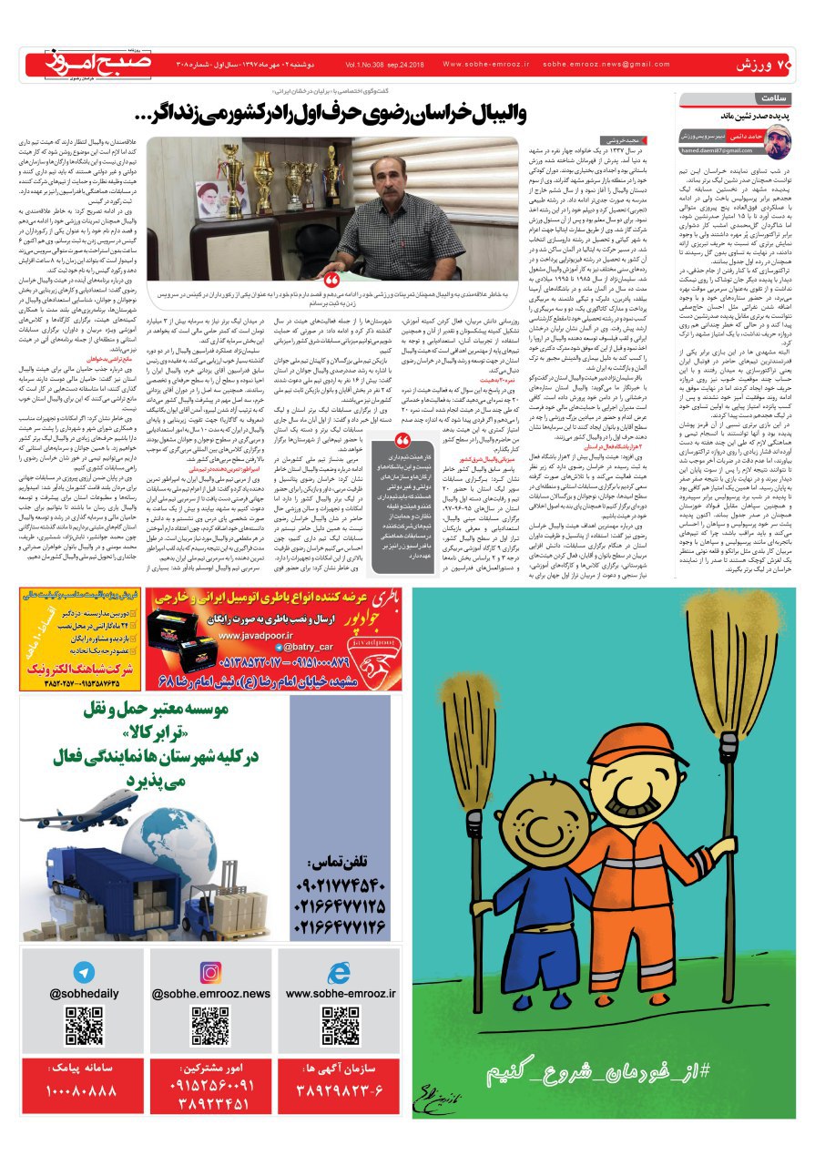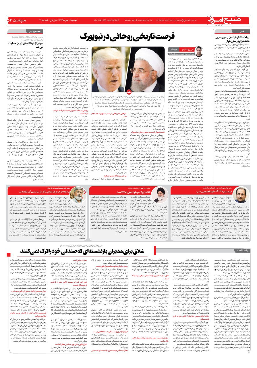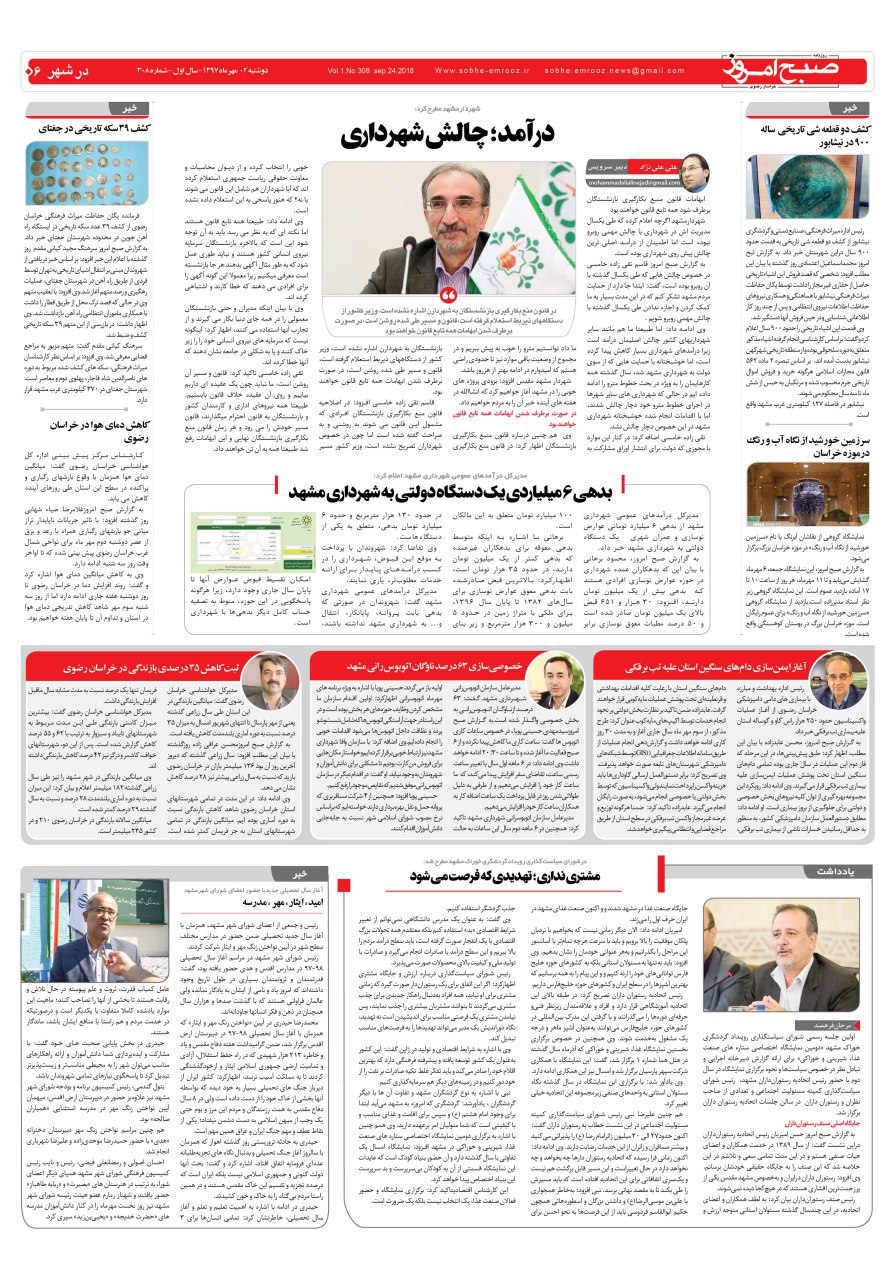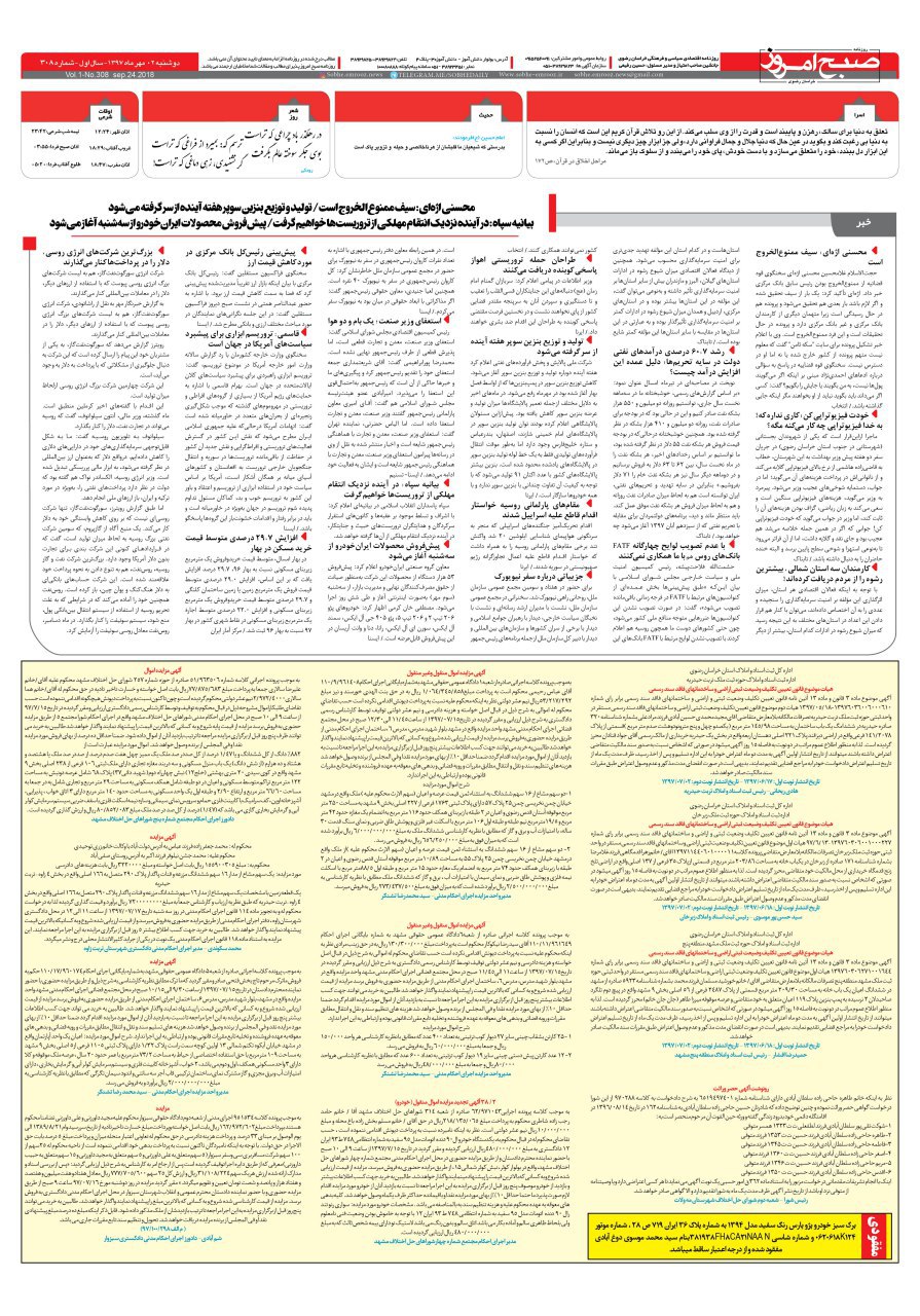 روزنامه دوشنبه ۲مهرماه شماره ۳۰۸ مهر 2, 1397/0 دیدگاه /در قاب روزنامه /توسط صبح امروز دانلود pdf روزنامه دو مهرماه https://sobhe-emrooz.ir/wp-content/uploads/2018/09/IMG_20180924_080620.jpg 914 1280 صبح امروز https://sobhe-emrooz.ir/wp-content/uploads/2019/07/sobh1.png صبح امروز2018-09-24 09:22:032018-09-25 09:43:21روزنامه دوشنبه ۲مهرماه شماره ۳۰۸