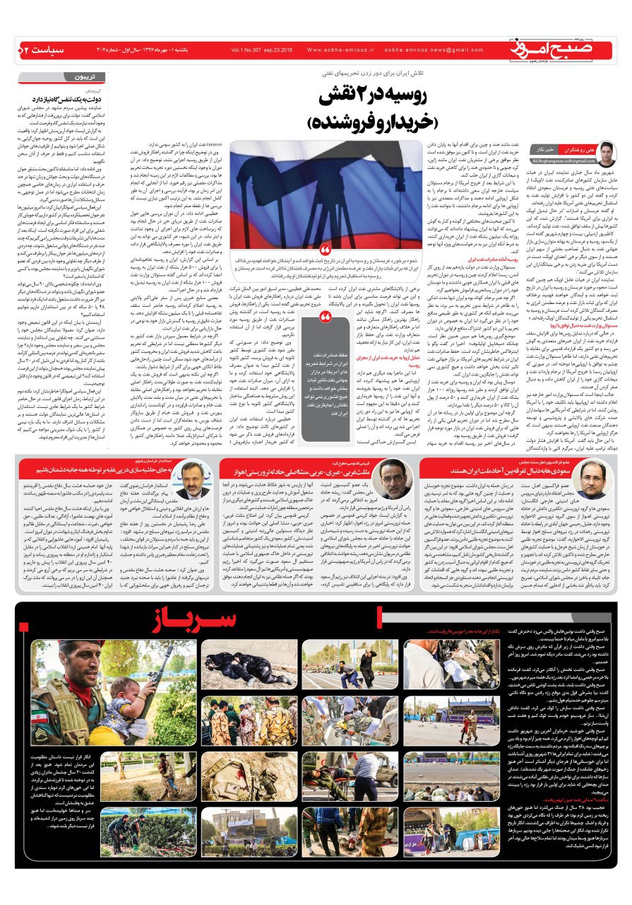 صبح امروز2018-09-23 09:01:082018-09-23 09:17:34روزنامه یکشنبه ۱مهرماه شماره ۳۰۷
