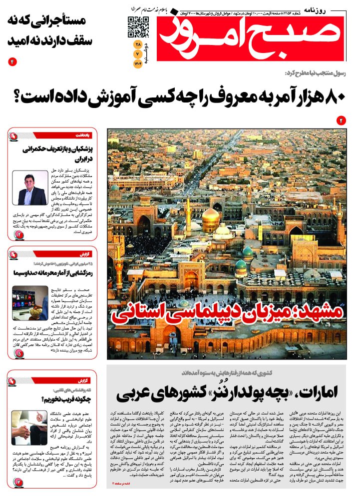 قاب روزنامه صبح امروز