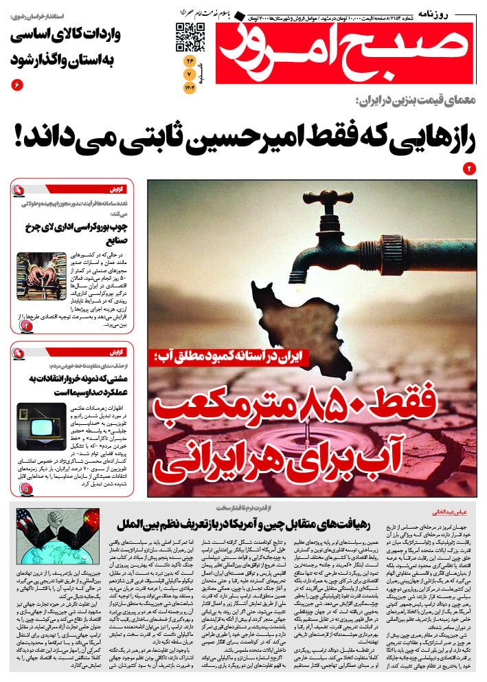قاب روزنامه صبح امروز